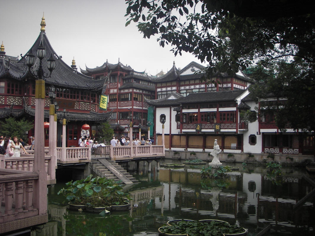 In de oude stad staat het kenmerkende Huxing Theehuis. In het