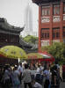 Doorkijkje in de Oude stad met uitzicht op de meer dan 400 m hoge Jin Mao wolkenkrabber |